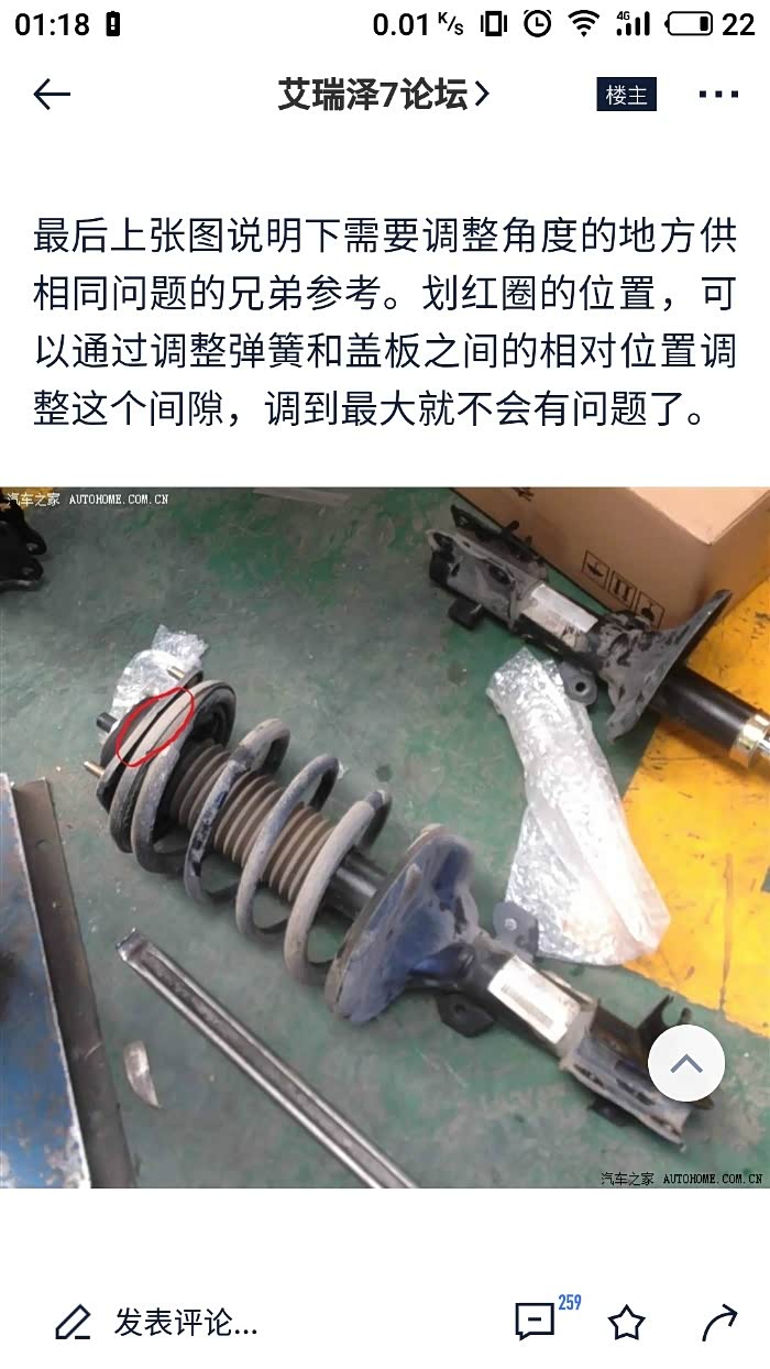 处理好后再组装起来就没有空隙了,可能有点紧不过没关系暂时还没装车实验。今天主要是安装没后来的艾7萨克斯减震器总成安装上去顶胶部分不合适强行装上了,试车后减震器比原车的的确舒适不少,路面细微的路感没以前那么明显,但是还是有撞击声,仔细看了看顶胶坐和车身碰到一起了缓冲胶不起作用,减震芯和车身成了硬性连接。看来还是要用艾5的顶胶,如下图...