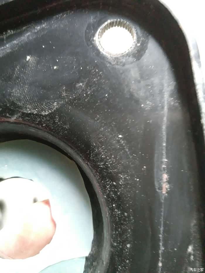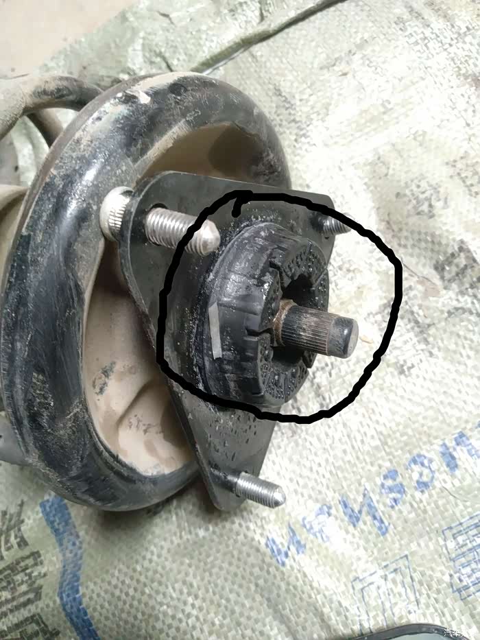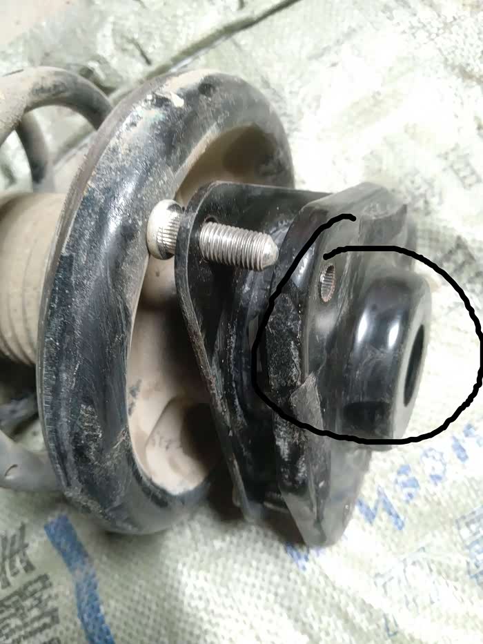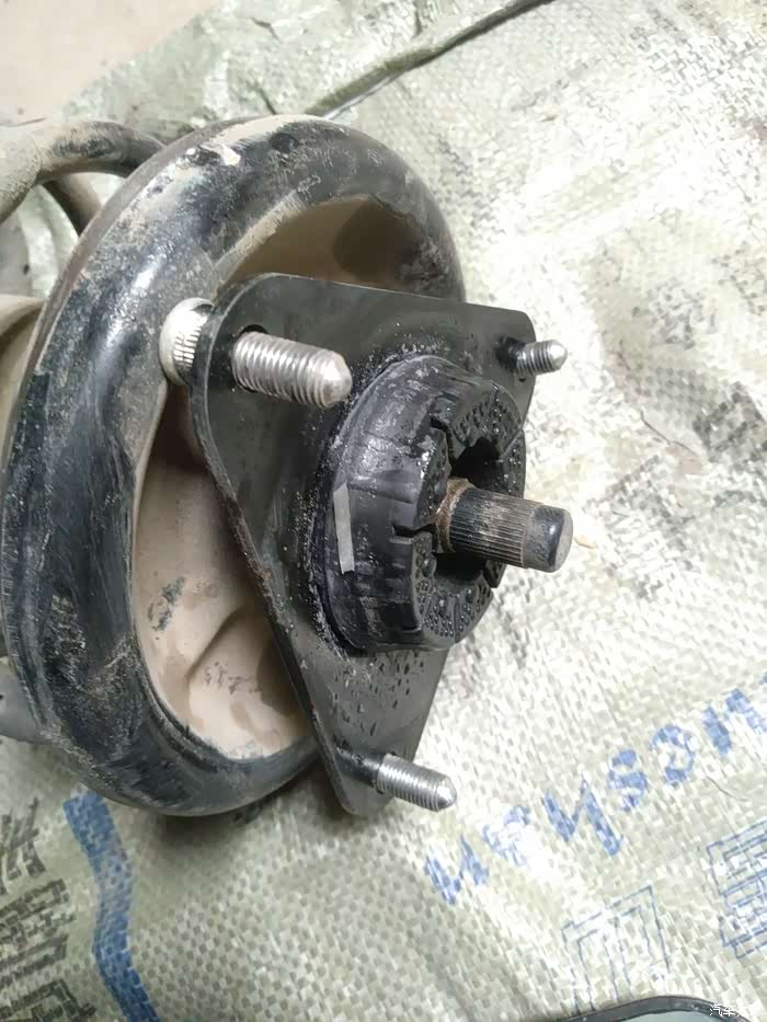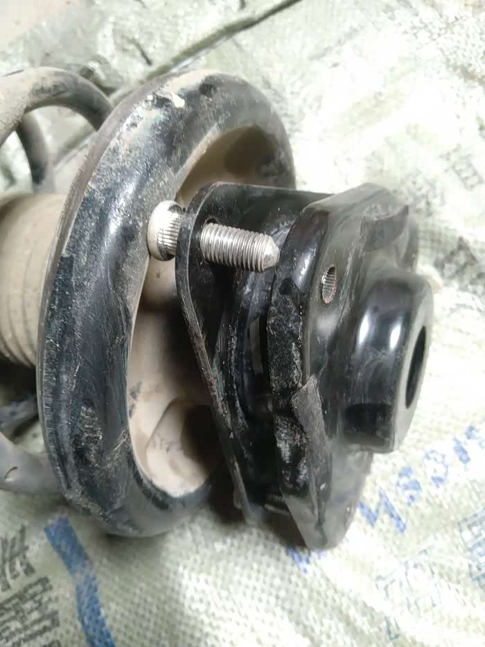 在售后换了减震器后咚咚声的确没什么了,但是过坑洼的路面撞击声太明显。于是今天自己拆下来研究了一番看下面的图片。