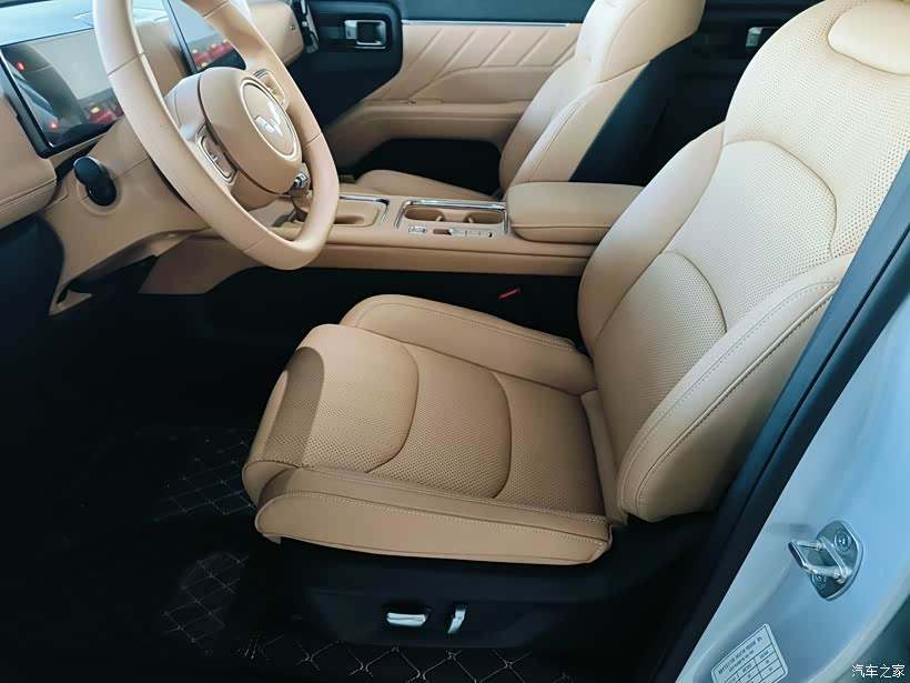 坐进车内,第一感受就是空间大到惊艳。2810mm的轴距带来了超宽裕的乘坐空间,我180cm的身高,前排调好座椅后,后排腿部能留出两拳多的余量,近乎纯平的后排地板,坐三个人也不会觉得拥挤。内饰走的是实用温馨路线,环抱式座舱设计很有包裹感,中控台和门板处都是软质皮革包裹,胡桃棕的配色高级感拉满,比同价位的硬塑料内饰舒服太多。12.8英寸悬浮大屏操作流畅,CarLink手机互联秒连,导航和听歌都很方便,全车25处储物格,手机、水杯、零食都能找到专属位置,后备箱常规容积就有763L,放两个28寸行李箱还绰绰有余。