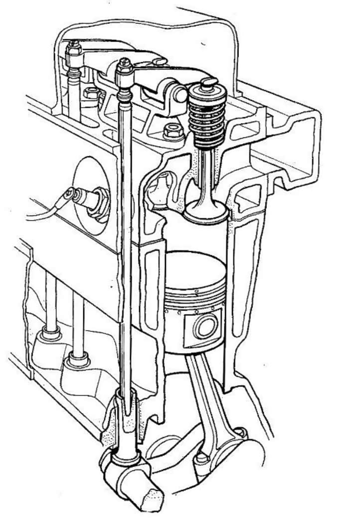 并且在转速过高的情况下,顶杆还很容易折断,因此这种设计多应用于大排量、低转速、追求大扭矩输出的发动机。