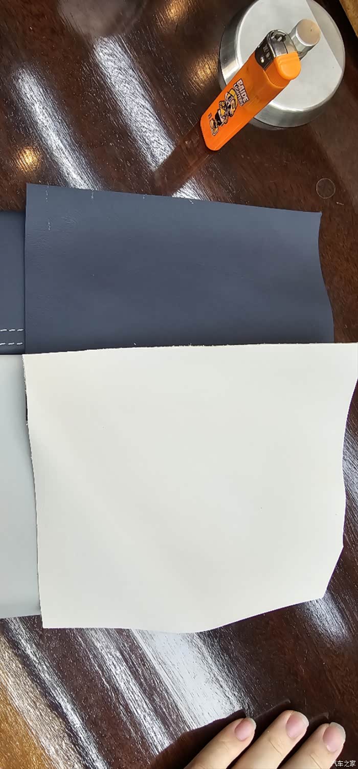 内饰用保时捷原厂皮,个人觉得亲肤,质感好。最终确定右边的板,石墨蓝+卡拉哈利灰。