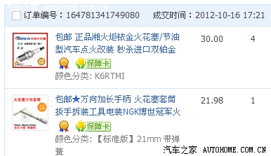 作业之前先说下为什么要换铱金火花塞,最近早上冷车启动的时候,刚启动几秒,怠速会往上窜一下突然上升,然后才慢慢下降。新车的时候不是这样的(是发动了就高,但是很稳,不会往上窜的那一下突然升高),现在开了有6千多公里了,虽然普通火花塞的寿命大概在2万公里的样子,但是我上下班就4公里左右的路程,平常跑长途的机会也不多,估计燃烧的不会很好;还有就是最近早上打火需要的时间变长了,新车的时侯大部分时间都是一点就着车,但是现在必须延长一些,要听到启动打齿轮的声音才能确定已点着车(这时候感觉已经有点伤到启动机齿轮了),所以动了换铱金火花塞的心思,下面是taob...