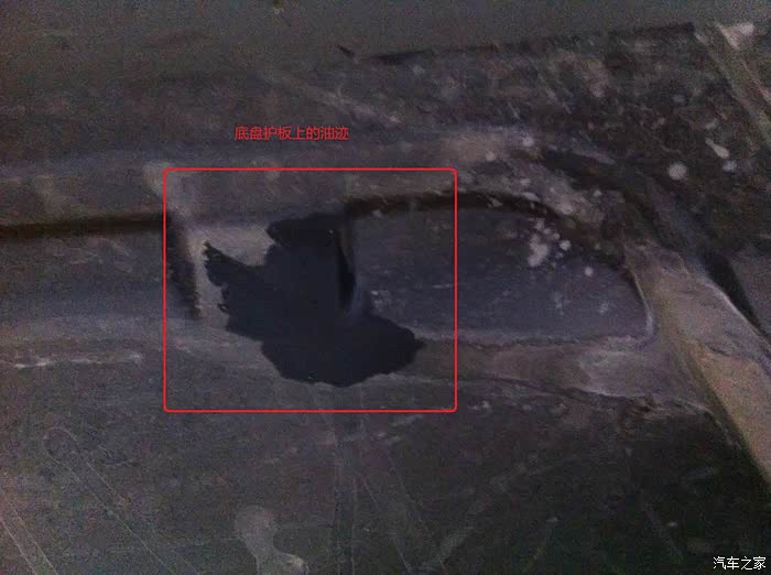 不过随后马上问题就来了,开了半年后去首保时发现,拆下底盘护板发现有油迹,见下图