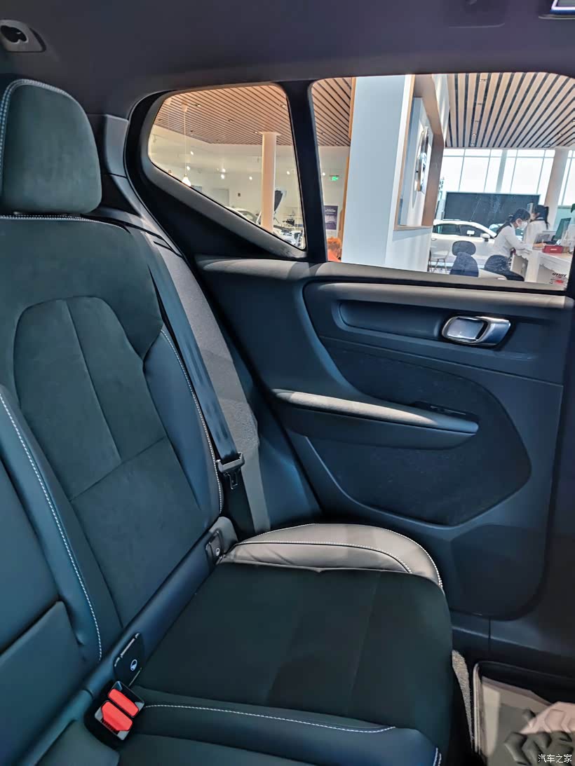 其次,后排空间对我来说够用了。XC40定位紧凑型SUV,前排空间很充裕,180cm的身高坐进去也不会觉得局促,但后排空间就比较一般了,同样身高的人坐后排,腿部余量只有一拳半左右。日常家用,坐两个人没问题,但如果长途三个人,就会觉得有些局促。