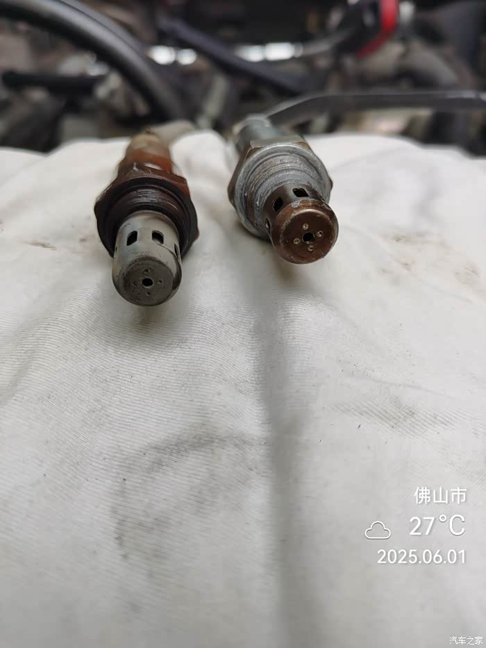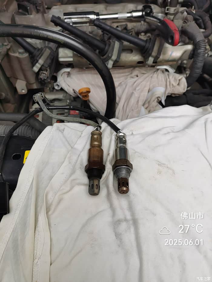 各位车友,其实氧传感器坏是有征兆的,之前我也不明白的,现在问题解决后我就明白了,主要征兆是发动机声音变大,而且相当明显,我当初怀疑是加油的油品问题,也加了几瓶燃油宝问题还没有解决,节气门,火花塞问题也怀疑过,当初发现发动机声音变大是今年春节后的事,由于自驾游和回老家跑了不少地方,最先是怀疑加油问题,直到5月份发现发动机故障灯突然亮了,自己第一时间是检查机油是否少,还有发动是否正常,结果没有发现问题,还可以正常开,我就怀疑是氧传感器坏了,当天就开到自己常去维护的汽修厂做了检测,当时做检测后发现是氧传感器坏了,他将故障码清除后当时重新打火,当时故障码是没有亮,他也让我观察下是否是氧传感器假坏了,或者是油品问题引起的,结果我收工重新着车时故障灯又亮了,我确信是氧传感器坏了,由于当时没有问是前氧还是后氧坏,自己最终还是将前后都淘了回来。更换氧传感器后发仪表盘上的故障码并不会自己消失了,还是需要用到OBD设备清除的,下面是自己更换的过程: