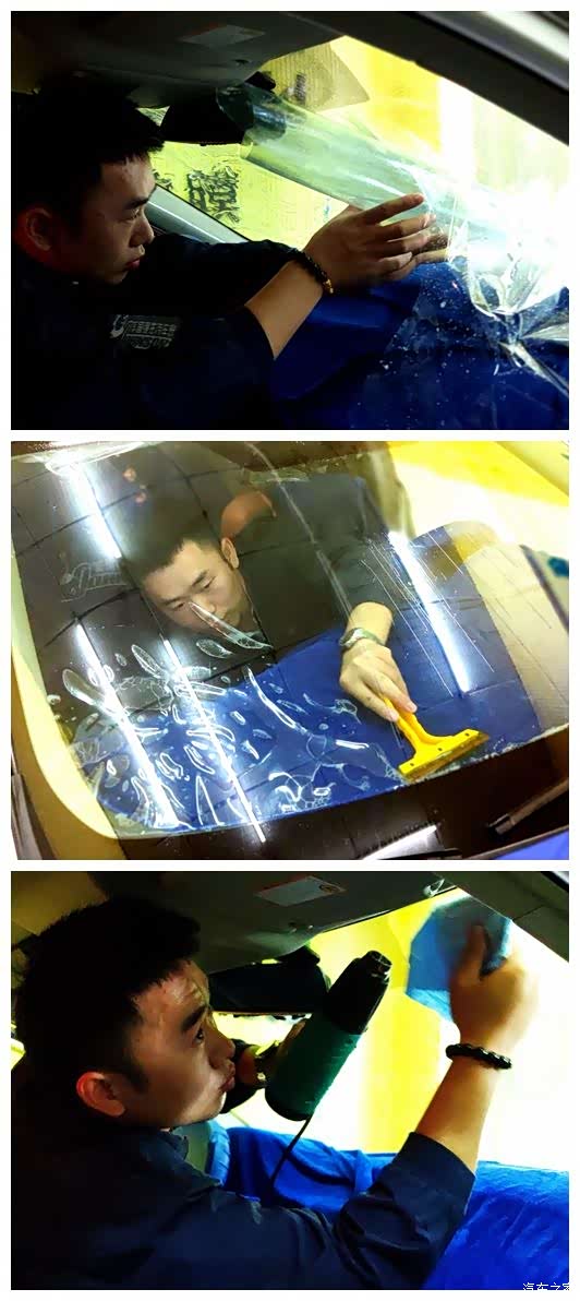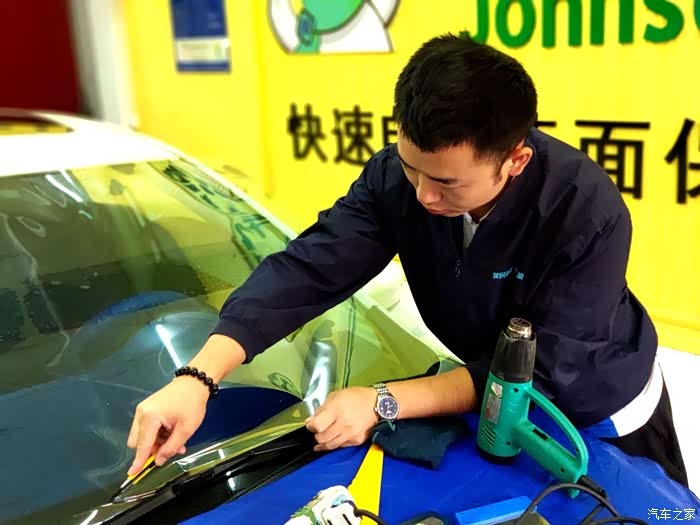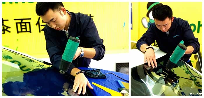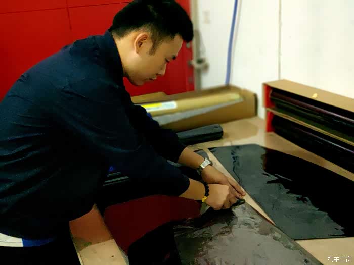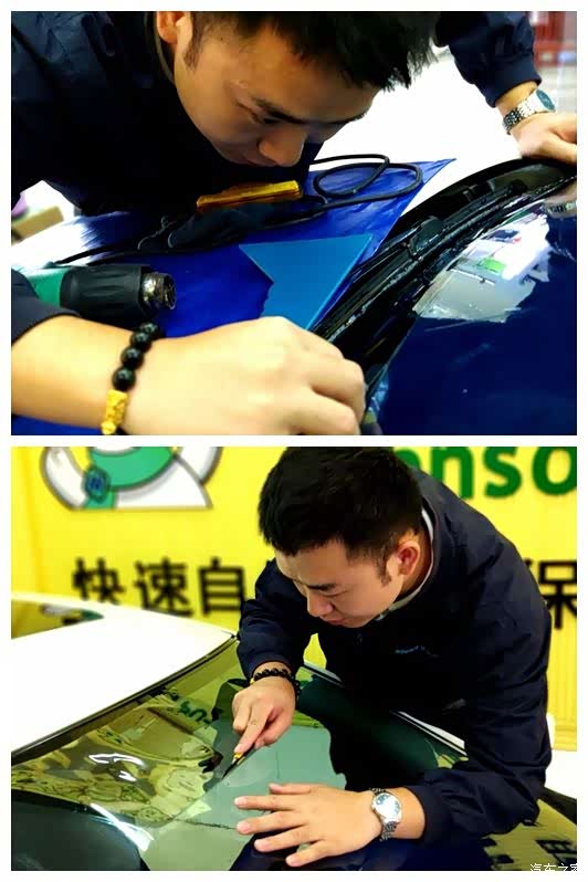 3.认认真真贴新膜。在贴膜过程中,比对打板、烘烤定型、精裁收边,每一步都要严谨细致,不可以有丝毫的马虎和得过且过思想。