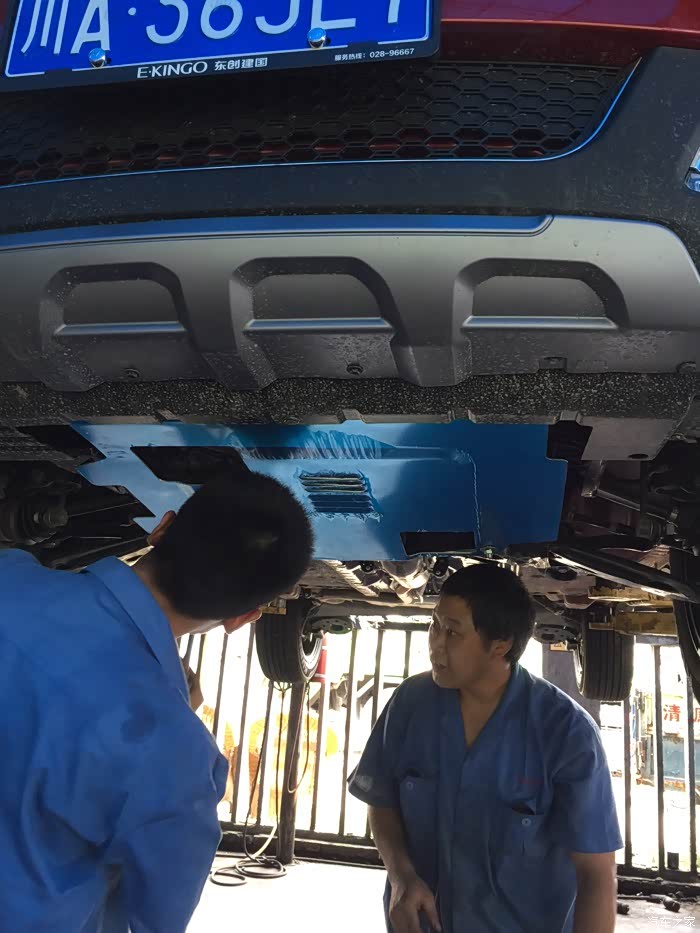 正在装发动机护板。验车时4S店强烈推荐,给我最大优恵价300元!太坑人了吧。看我在网上买的,专供4s店的加运费105!