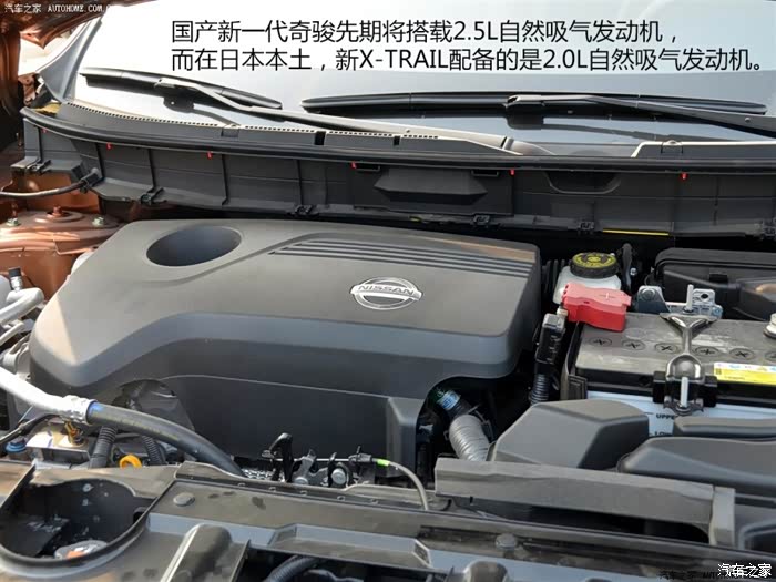 动力方面,日本先期出售的新一代X-TRAIL搭载的是型号为MR20DD的2.0L自然吸气直喷发动机,最大功率147马力/6000rpm,峰值扭矩207牛·米/4400rpm。东风日产新一代奇骏先期将搭载2.5L自然吸气发动机,最大功率为186马力。与发动机匹配的是一台由加特可(Jatco)提供的CVT变速箱,型号为CVT8,相比前代奇骏的变速箱,新变速箱的齿比覆盖范围更大,整体传动效率更高,同时对指令的反应也更迅速。