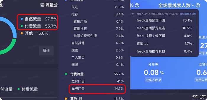统计“进入直播间人数 + feed流停留3秒以上人数” ,适合直播中快速盯盘,看实时流量趋势;