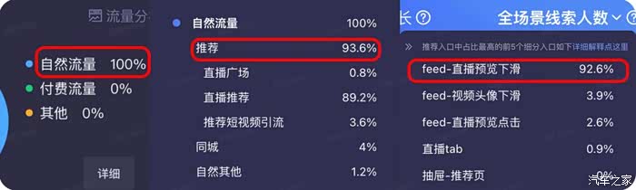推荐信息流、主页头像闪动、短视频引流,用户主动点击进入直播间,这部分“曝光进入率”反映内容吸引力;