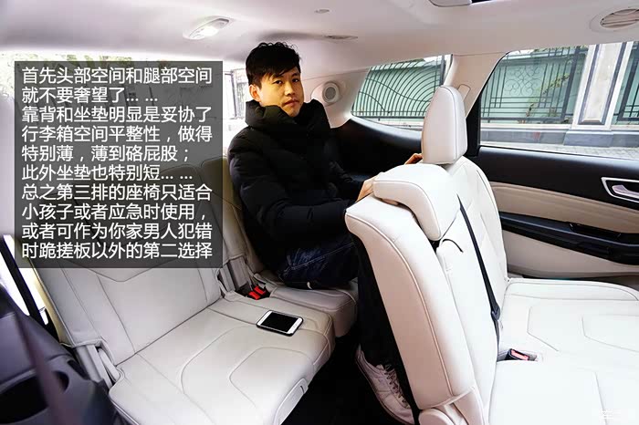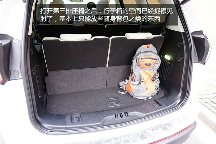 ;7座的设计在必要场合还是非常实用的,储物空间也非常强悍,只是第二三排的乘坐舒适性比较一般不太适合长途旅行。