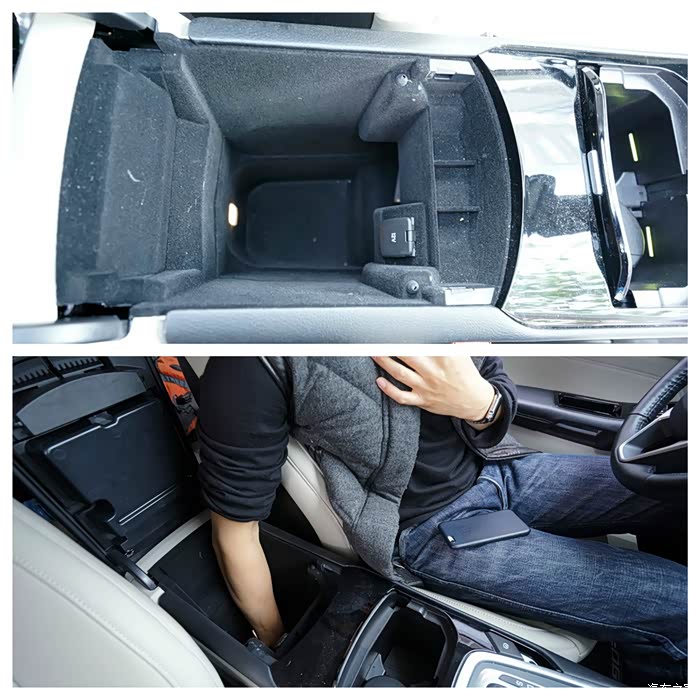 中央扶手箱的储物格超级深,里面还提供了一个12V的电源接口