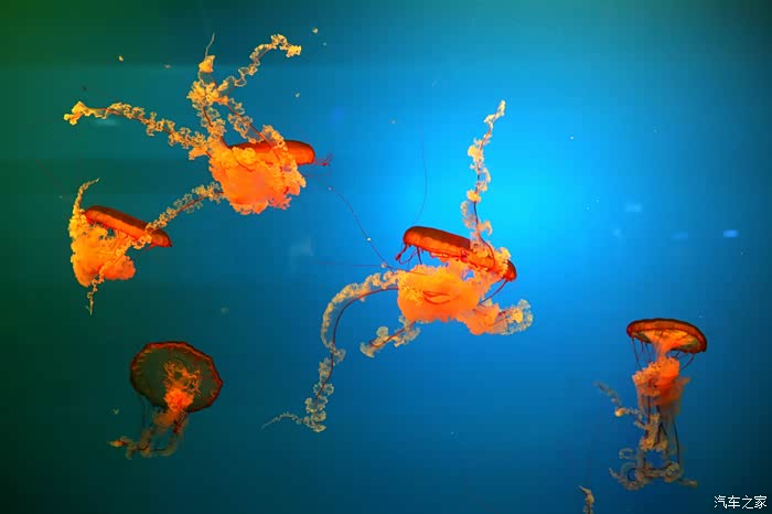 水母身体的主要成分是水,并由内外两胚层所组成,两层间有一个很厚的中胶层,不但透明,而且有漂浮作用。它们在运动时,利用体内喷水反射前进,远远望去,就像一顶顶圆伞在水中迅速漂游;有些水母的伞状体还带有各色花纹,在蓝色的海洋里,这些游动着的色彩各异的水母显得十分美丽。