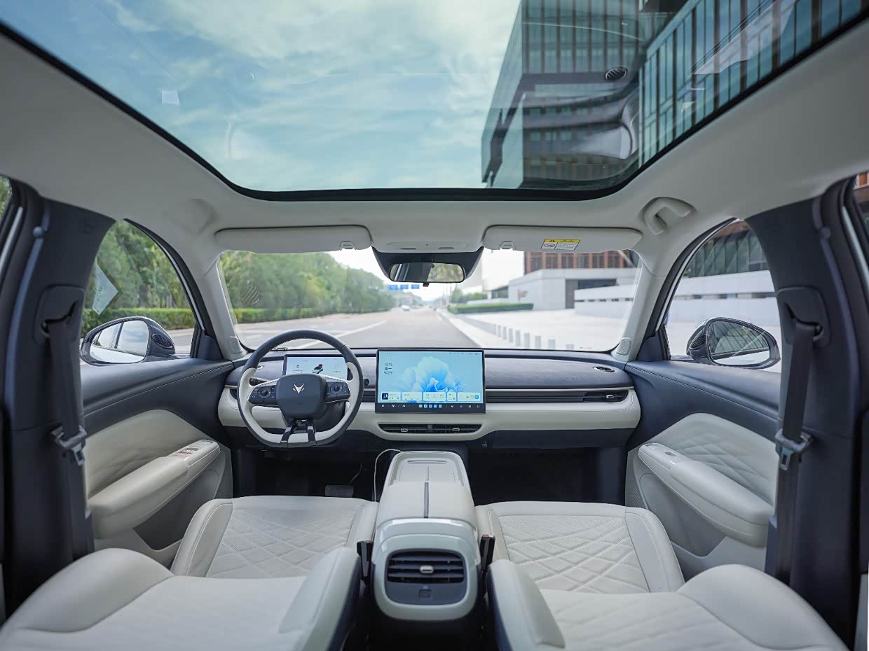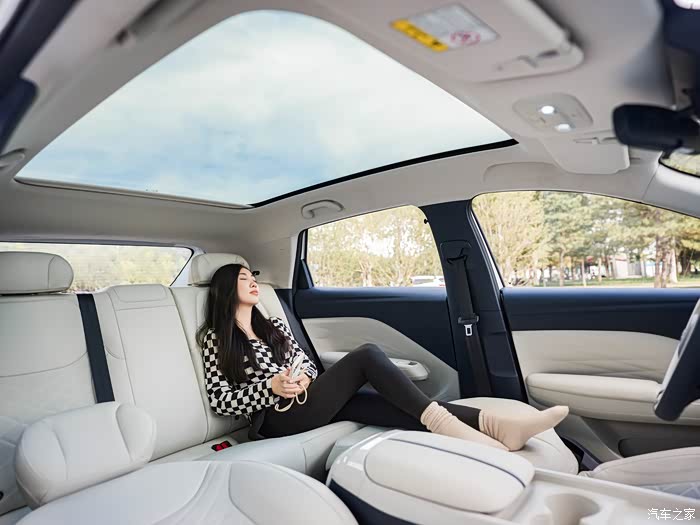 小狐狸最大的舒适性亮点就是:前排主副驾座椅摘掉头枕后,可以靠背放平连通后排,整车秒变1米9大床房。车顶还配有的2.34平米超大全景天幕视野通透,采光效果极佳,宝妈可以随时在车里哄睡小宝宝。我也要好好享受一下!