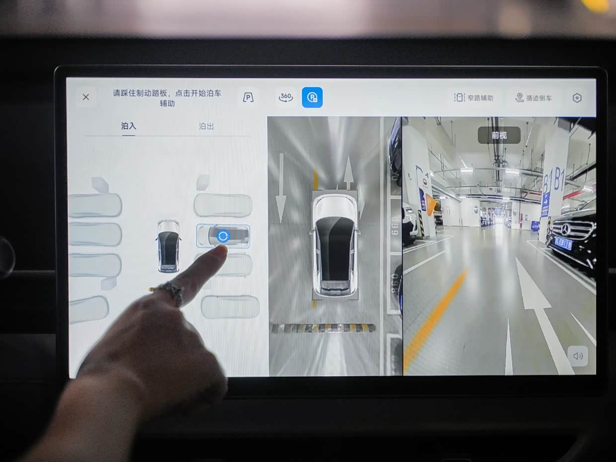 抵达钻石球场停车场后,本次约会的压轴表演终于要来了,闺蜜之前裂墙推荐的智能泊车是时候见真章了!!车辆主驾驶正对着停车位,脚踩刹车,选择智能泊车,点击车位后即可一键泊入。这次我特地找两边都有车的车位来实验。