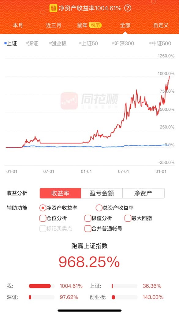 小弟专职炒股,14年步入市场,经历了杠杆牛,股灾,熔断,以及18年的大熊市,随后在19年初逐步好转,连续做对了主线,19年全年贯彻超级猪周期,年初底部重仓了牧原股份,一年做了七倍收益,随后年底先于市场挖掘了IGBT的扬杰科技,捷捷微电做了70%收益,过年收盘前一天重仓了半导体的兴森科技,上海新阳,华天科技,这三只。年后疫情市场全面跌停,吓得不敢动弹,第二天大幅低开无奈加仓,满仓满融又干了一倍。随后四月份账户有所回撤,但六月份提前布局了军工的龙头航发动力,c919机型放量,让我又干了一倍。直到现在,手里的有色资源新能源锂电锂矿股,让我继续大肉,我中间也错过很多赛道股,大牛股,例如医美,碳中和,钢铁,煤炭这些我通通没有上车,但不妨碍我坐稳其他主线吃大肉。有同样的股友可以一起交流分享探讨逻辑,好了不啰嗦了,言归正传