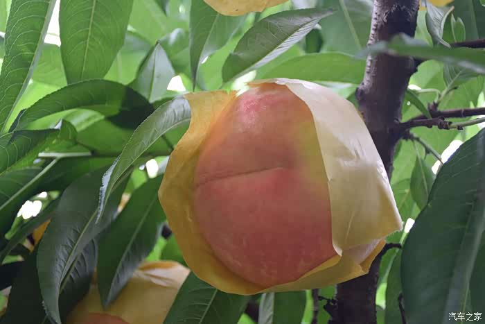 远远的就看见了桃树,上面都是袋子套起来的,有点流口水了