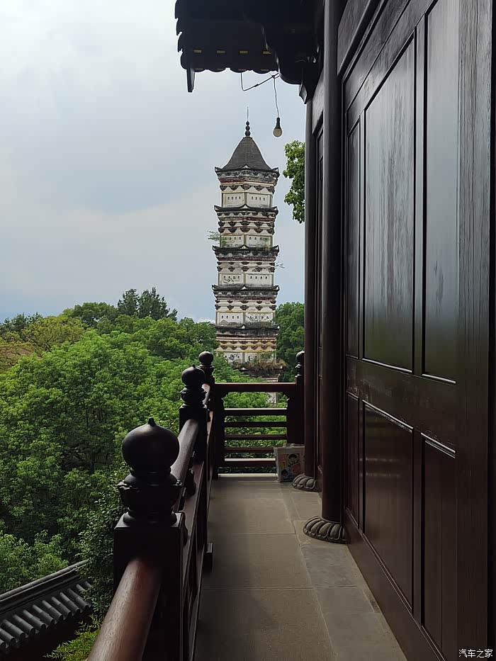 身处楼阁是东林寺,对面宝塔在西林寺,想起了东坡居士的题西林壁。