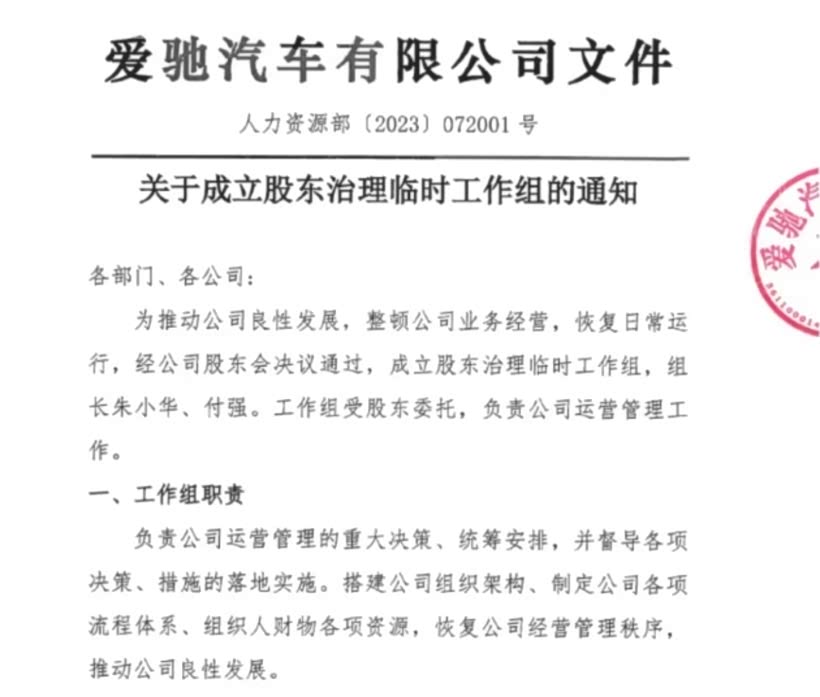 讲真如果不是这纸通知我都以为爱驰已经破产了。