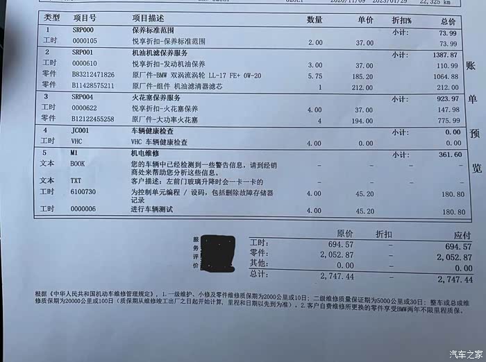 由于在4S保养有代金券,本次保养继续在4S。