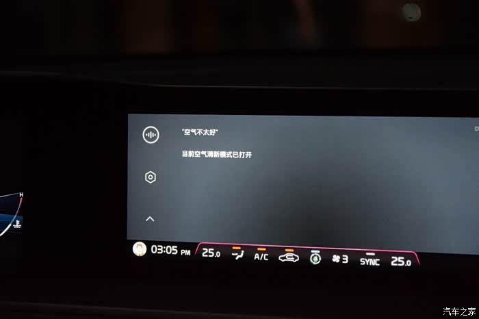 如果你感到车内空气不太好,只要对起亚K5凯酷说出来,它就能打开空气清新模式。当然起亚K5凯酷还有隧道模式,也就是当你进入密闭的隧道时,起亚K5凯酷也会自动打开内循环,保证车内空气清新。