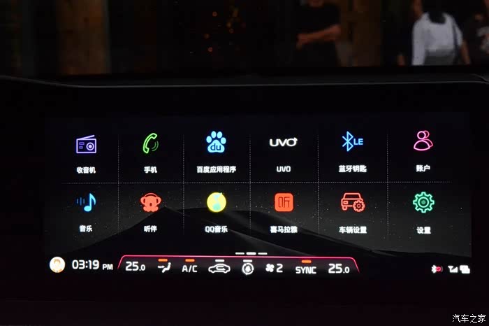 首先来说下UVO,它是起亚与微软合作开发的一款车载信息系统,UVO车载信息系统包括3部分,5个主要功能,分别是车载部分,手机部分以及后台部分,分别对应车辆诊断/车辆问题咨询、目的地设置、SOS救援、远程控制车辆及安全及安防服务五大功能。