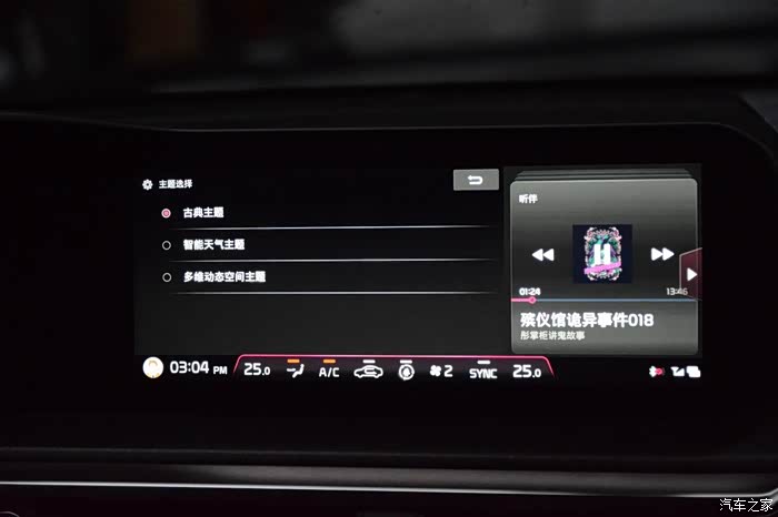 基于上述的强大技术背书,起亚K5凯酷有很多人性化功能。想要完美的呈现出这些功能,自然少不了两块12.3英寸的大屏。其中全液晶仪表盘支持三种不同样式,分别是多维动态空间主题、古典主题以及智能天气主题,其中值得一提的便是最后一个智能天气主题,由于采用了百度天气气象信息,因此可以在仪表盘上显示昼夜、多云乃至雨雪等实时天气变化,相比那种在中控屏上以天气软件呈现信息方式来看,起亚K5凯酷上这种方式更为直观且具备新意。