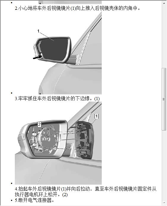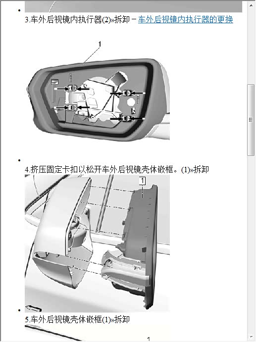看图吧,希望对你有帮助,基本3步,1.车外后视镜镜片,2车外后视镜内执行器,3车外后视镜外壳嵌框