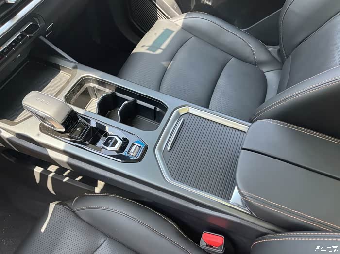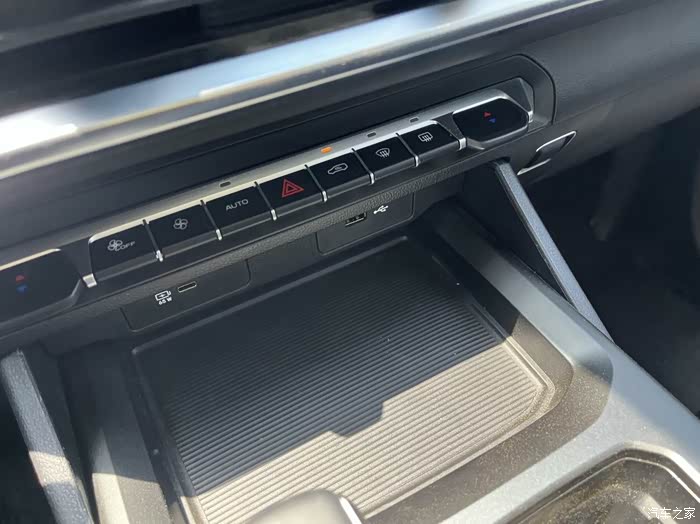 车内中控屏下面保留一排实体按键,很多功能都可以通过按键操作,再往下是可以放手机的储物格,这车还支持手机无线充电功能,再包括车门储物格这些,容量上零零碎碎的能装不少东西,自驾游出去玩都会用得到。
