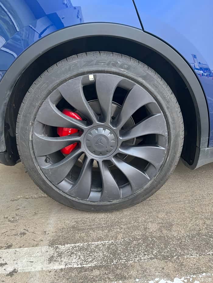Model Y标续和长续航版可换20 英寸感应涡轮轮毂,搭配的是米其林的Pilot Sport EV轮胎,需加8k。