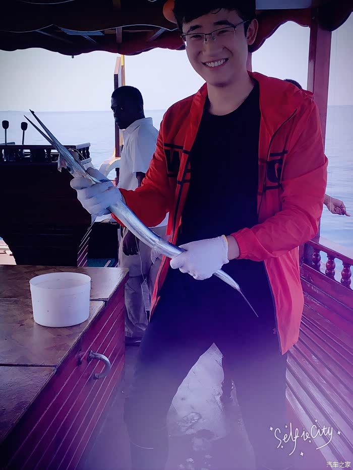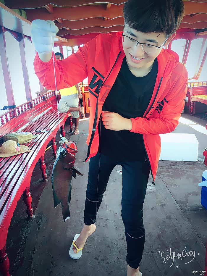 登上钓鱼船 我们基本是包船 因为没人 船上两个小黑一对一服务