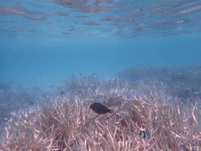 在这里给大家提个醒,不要往太远的地方游哦!之前我一直往远处游,不知不觉游到了好像海底悬崖的地方,水的颜色突然深了,也冷了,会把你往深处吸,最危险的是在深海没有了浅海珊瑚的保护,很可能会遇到大鱼,因为之前我就碰到了小鲨鱼(具体没有看清楚,很像),当时就是在深海和浅海的交界处,吓得半死,大概比我人要小一点,虽然不大,看到了后我立刻往回游,而且是往珊瑚多的地方游,有的珊瑚快长到了海面上,脚踩在硬的珊瑚上面站起来,就能站在海里露出海面了。确实比较吓人,后来再也没往远处浮潜过。