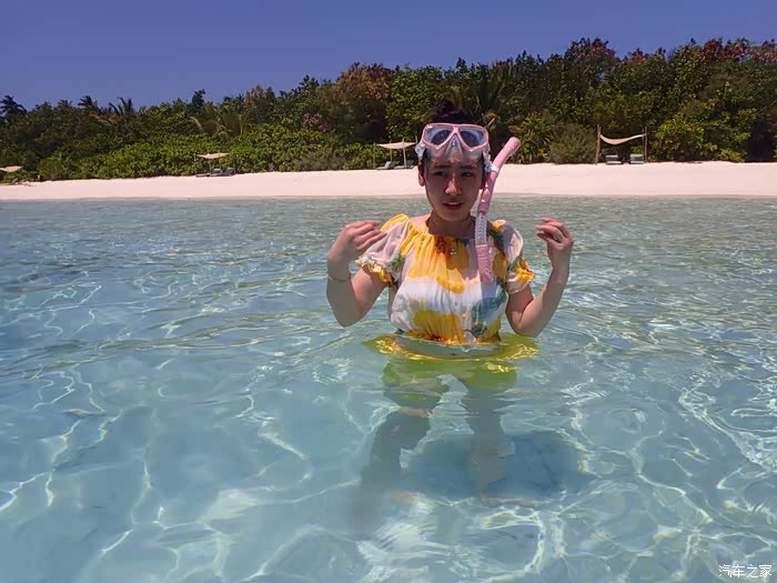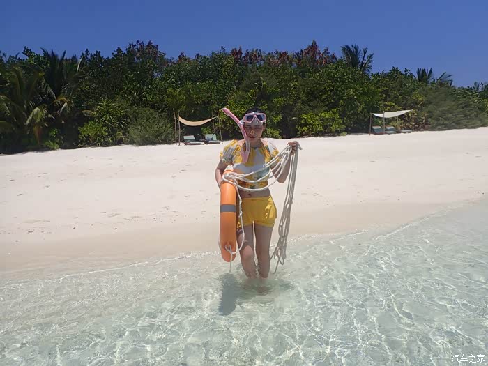老婆不会游泳 是个旱鸭子 更别提浮潜了 也是个胆小鬼