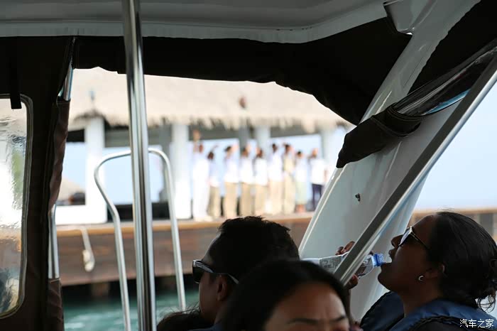 下了飞机后一直比较兴奋,忘记了拍照片,直到坐在了上岛的快艇上才拍了一张。PS:飞机出口之前有个窗口可以换美元。