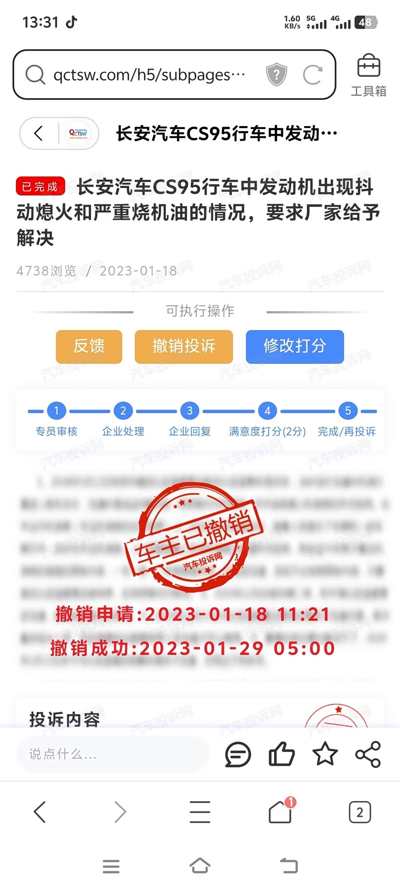2020年我买了这个2019款的长安CS952驱豪华版,然后这个车开了2万多公里。两万零八百公里的时候,发动机就不行了。跑高速的时候机油空了, 然后仪表盘没有报警灯,车辆强制的就关闭了。扒开机油尺一看,你这机油尺里边就冒烟了,是机油没了造成的。这个拉杆应该是对这个发动机有损伤,然后我就投诉了。投诉没多久,他们那个4s店经理给我打电话,想让我把这个投诉撤掉。我说那你给我换车或者换发动机,后来经过跟他协商给我换发动机。当时以为换了这个发动机之后就没事了,结果换完发动机之后这个车又行驶了两年,也就是又多行驶2万公里。现在这个车仪表一共显示4万多公里,这个发动机又出问题了,这发动机现在从机油尺空的孔里往出喷机油啊。因为我现在这个车已经已经过保了啊,要是在4s店维修价格肯定是特别昂贵,所以说准备自己找地方维修。这次问题出现,之前所有车辆维护都是在长安店里做的,都是有迹可查的。就最近一次更换机油,应该是在一个礼拜之前。