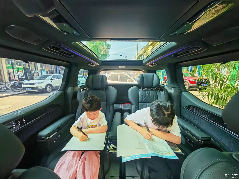 以前带老人孩子出门,最头疼的就是空间挤。现在坐进极氪009,爸妈在后排能直接把腿伸直,靠在柔软的座椅上打盹,连我家那只爱闹腾的小狗都能在中间铺个垫子打滚。关上车门,世界瞬间安静下来,长途出行,二排的两个小桌板,可以说是孩子写作业的好地方。