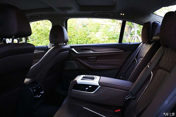 这个车有全景影像和HUD(这两个不知道是不是选装的)感觉又跟7系近了一点,胡桃木的饰板,那种凹凸的纹路看起来还是蛮有质感的,其他的跟7系也差不多,很宝马,中控台是软塑料的,颗粒感比较大,看起来不是很高档,但是有了假的缝线,看上去又会好点,大体来看,比起上一代5系的内饰也算是进步了很多,更细腻的皮质,更好的做工,更好的用料,但是有些细节依旧不是很到位,比如这台530豪华,虽然有了跟7系一样的座椅设计,但是皮质的感觉还是差了很多,毕竟价位摆在那里,对于他这个级别来说,应该算是可以有个80分了,为什么还差20分呢,那20分就是屁股了,真的热啊,夏天开这个车超过1小时,屁股要湿,这里吐槽一下宝马,就算不给座椅通风,好歹也给个打孔皮吧,看上去这么高级的座椅,让人湿了身,这可如何是好!后排比起前排就要高级了很多,跟7系一样的座椅设计,后排pad;后排天窗;可以电动调节的后排座椅;还有桃木的包覆;跟7系一样的软头枕;还有后排独立空调,后排除了屏幕,基本该有的也都有了,十分厚道!