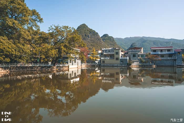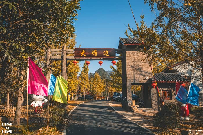 因为村子建在一个大水塘边上,所以村子直接简单粗暴的命名大塘边了,平时进村时不收费的,只有银杏的季节村委会在村口拦着收费。村里有一片停车场,整体来说适合自驾的朋友去。村里农家乐比较多,早上从桂林出发来这里吃个午饭也是不错的,这个季节要个土鸡火锅正好了。
