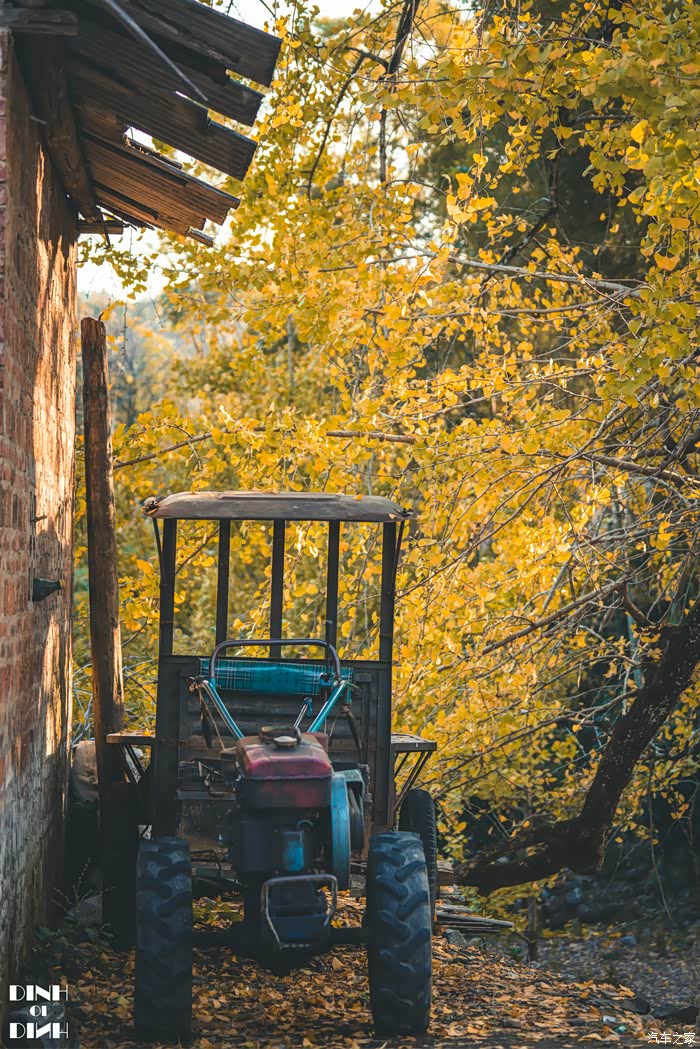 满地的黄叶秋风起黄叶落,边上还摆着老式的鼓风机,现在的孩子们,估计只有在这些农家乐和李子柒的视频里才能看到这些老物件了。
