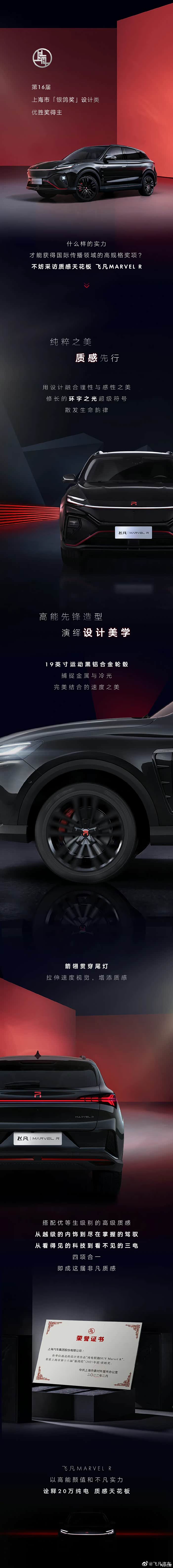 #飞凡汽车# #MARVEL R# 获得十六届上海市设计类「银鸽奖」🏆内饰尽在掌握,科技尽收眼底, 诠释20W纯电 质感天花板