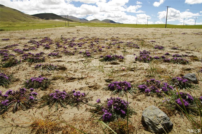一种蓝紫色的小花在沙地上顽强地生长着