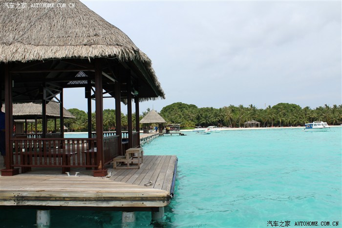 下飞机后由卡尼岛的服务人员带领,搭乘快艇20分钟左右到达卡尼岛。这是机场外的码头当时大概北京时间下午两点,当地时间5点多。温度31°,不是很热,风力4级,空气很清新,海风吹在身上很舒服。