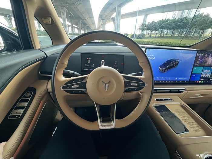 内饰在改款后换了比较新的设计风格,虽然似乎有那么一些眼熟但看起来还算可以,当然还是那句话见仁见智,另外带有华为智驾的版本没有副驾屏幕,这个设定还是挺奇怪的。做工和用料的表现都还是挺优秀的,符合一台豪华MPV该有的设定。车机系统表现还算不错,流畅度和菜单逻辑都没什么问题,还是比较容易上手的。