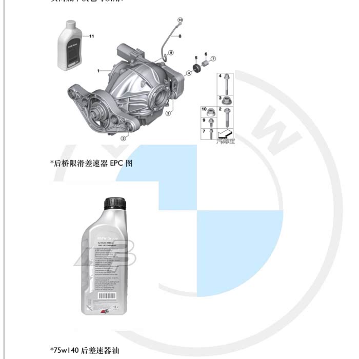 称 LSD 油、尾牙油等等),标号为 75W140,添加的后差速器油油量是 1.2L,一瓶不够, 买两瓶下次也可以用。