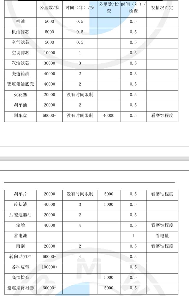 40000 公里往上的我就不详细说明了,因为已经到了再进阶一点的保养内容了,我会在 后面以表格的形式陈述大部分保养内容的对应公里数及时间,以防有些小伙伴会问,“我 车开很少的,是不是不用保养了呀?”,这种很逗的问题。