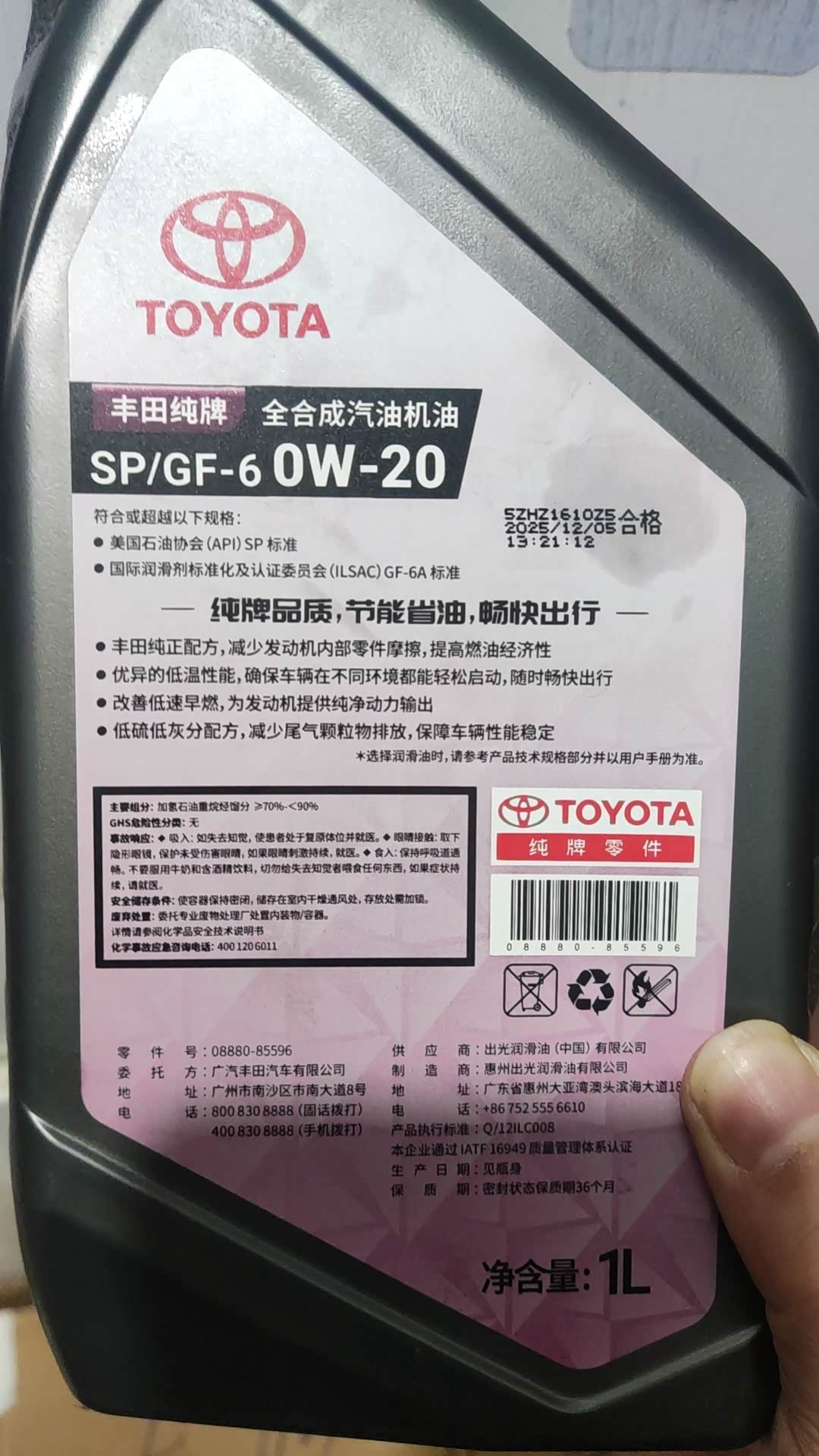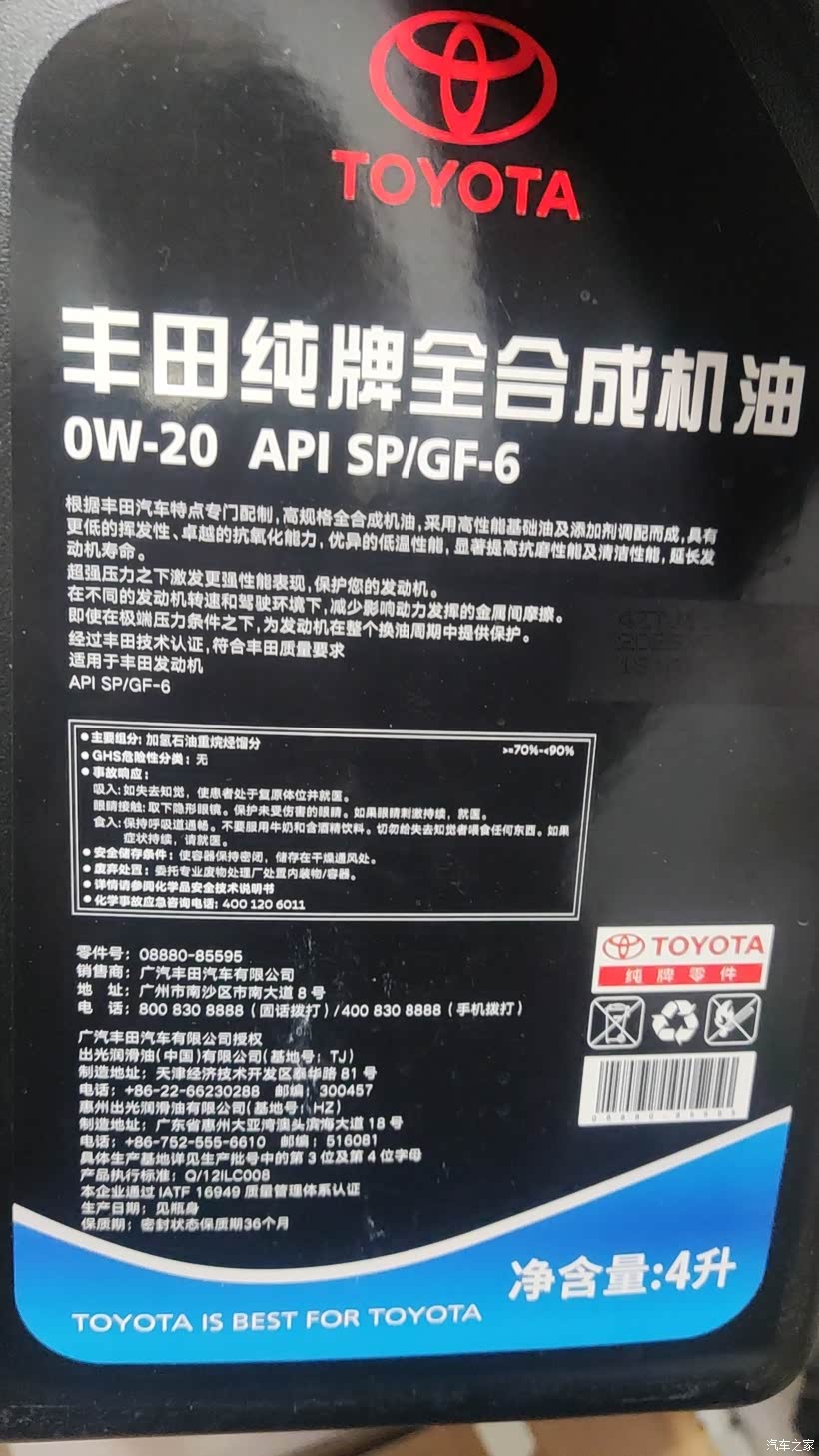 丰田0w20机油换包装了