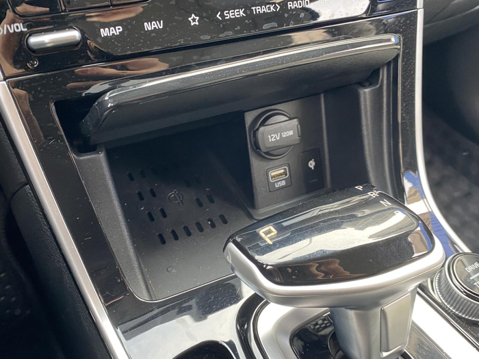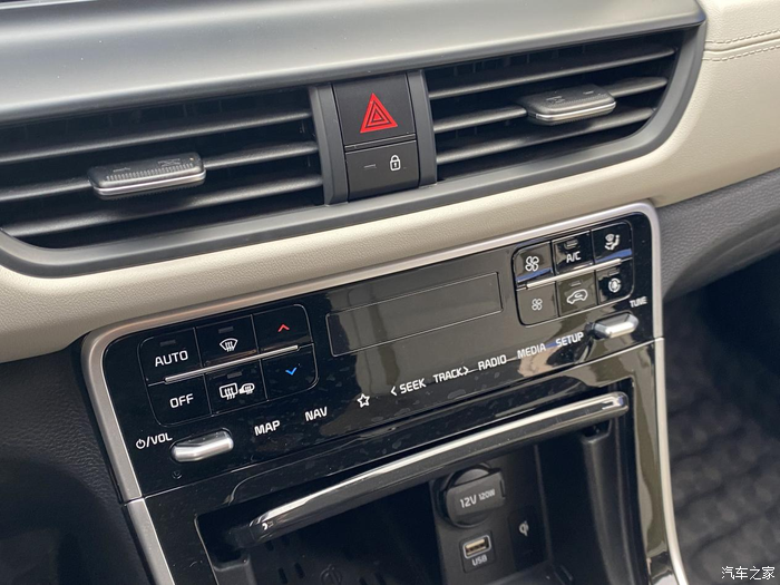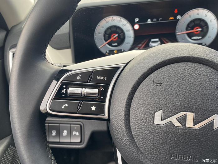 贯穿式的尾灯,中间是起亚的英文标,晚上一踩刹车,红白双色的车灯,很显科技范儿。而后包围的银色护板和“虎牙”式的雾灯区,确实相当亮眼。