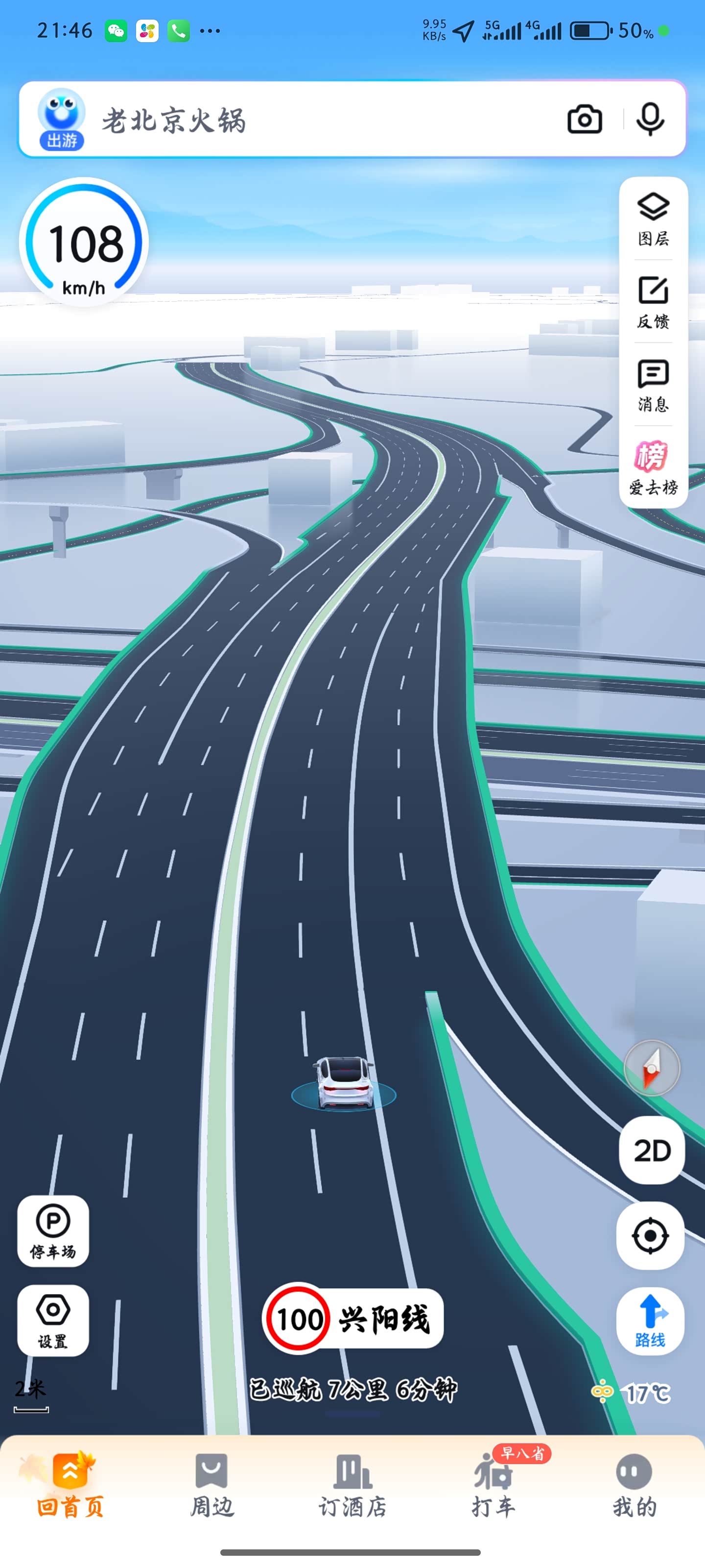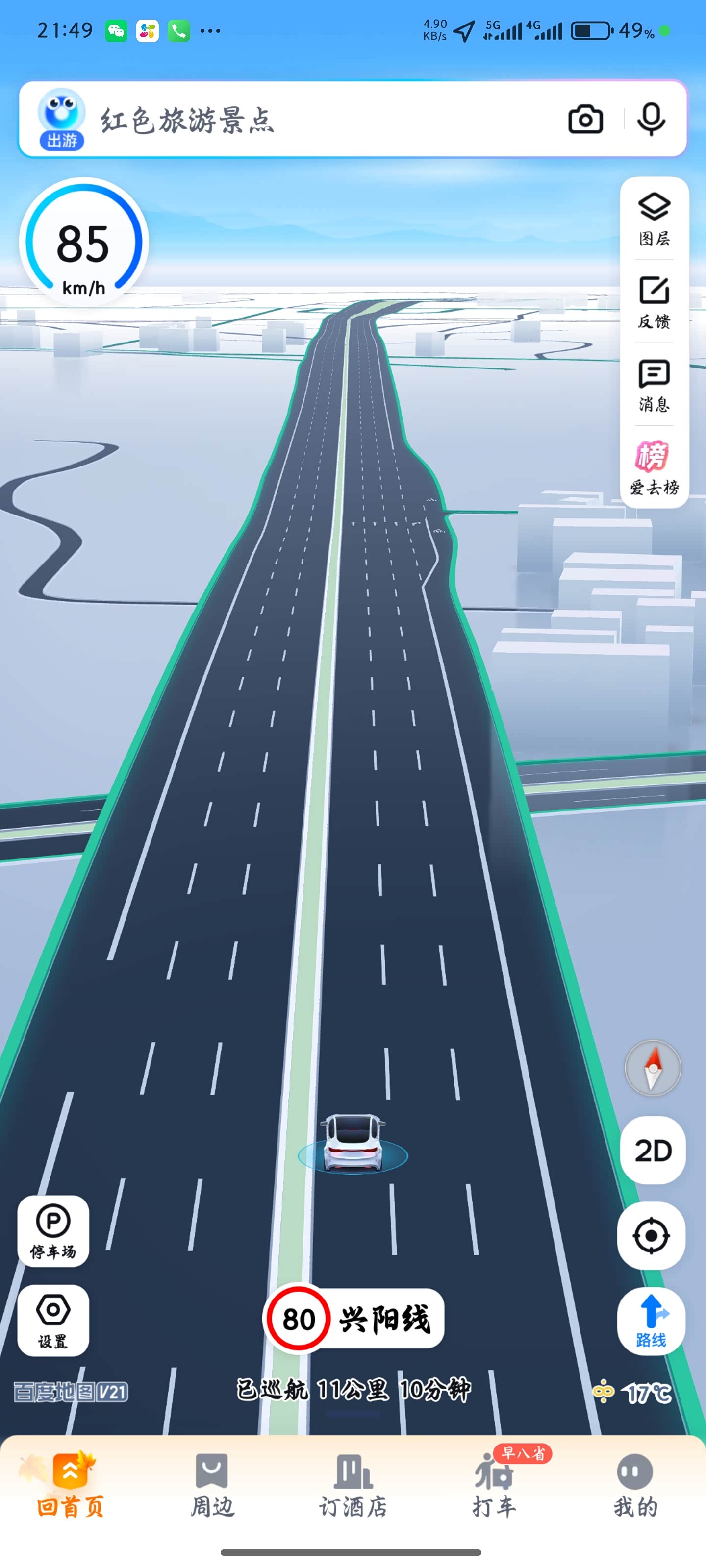 到了测试路段后,我分别试了 normal(正常模式)和 sport(运动模式)两种驾驶模式的表现。在正常模式下,我慢慢把油门踩到底,看着速度表一点点上升,最终最高速度定格在 85km/h,再往下踩油门,速度也没什么明显提升了。切换到运动模式后,提速感觉明显不一样,油门响应更灵敏,速度上升得也更快,最后跑到了 108km/h,这就是这台车能达到的极限速度了。不过这时候表显示只有105km/h,百度地图的GPS显示108km/h。