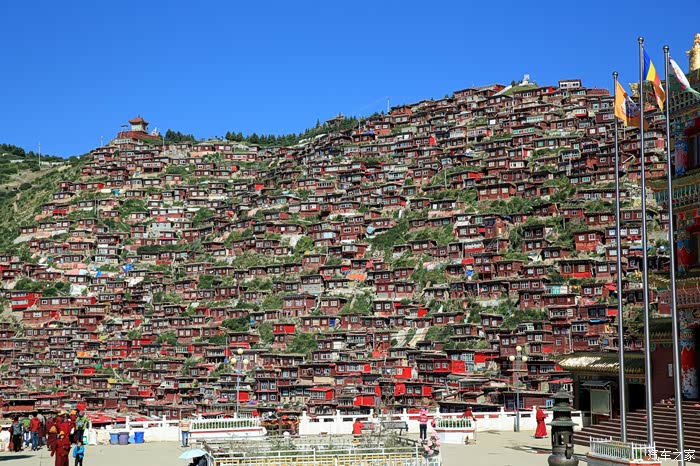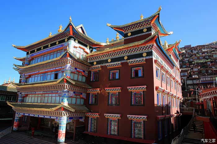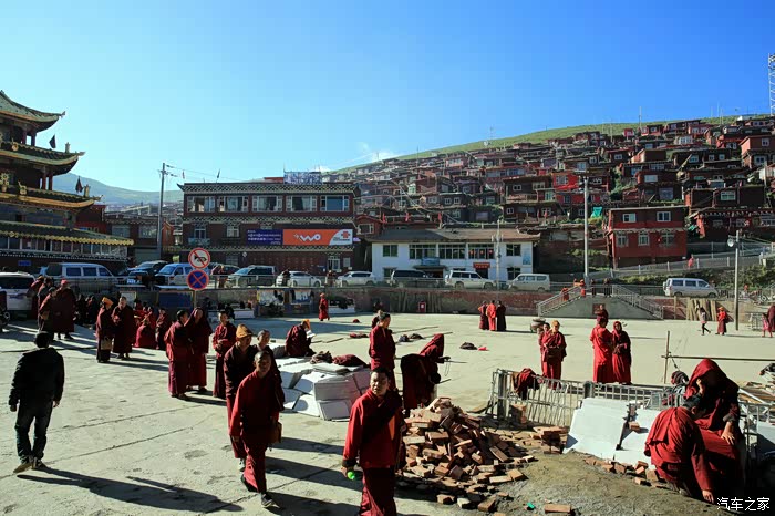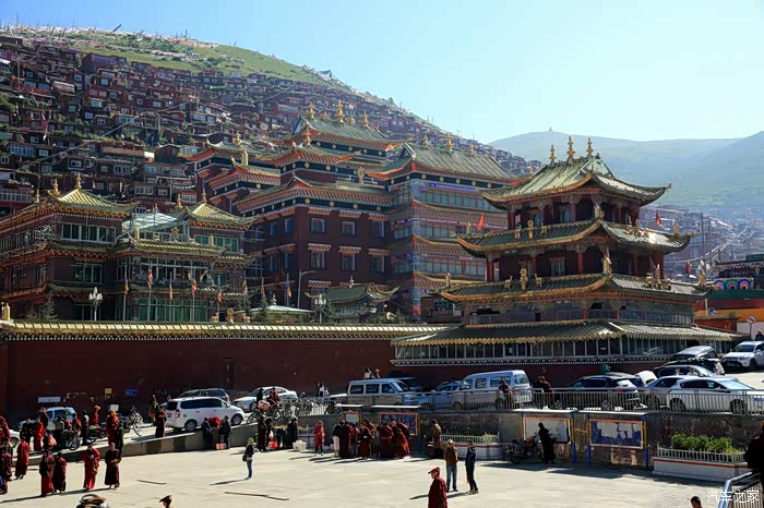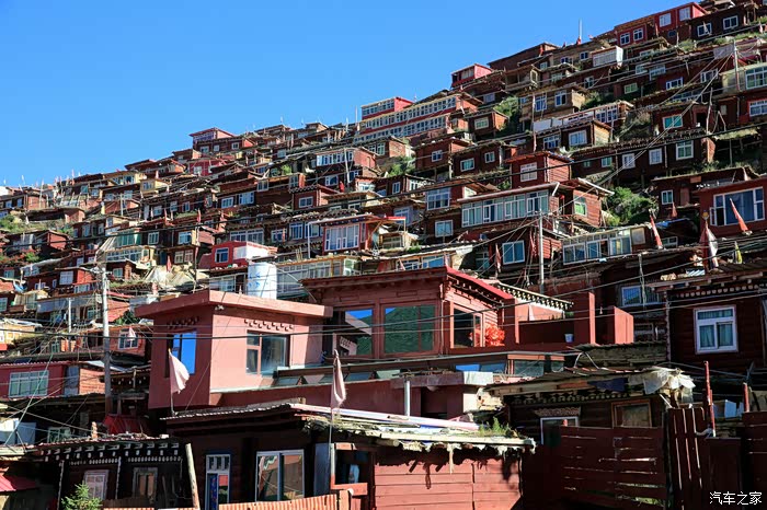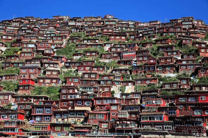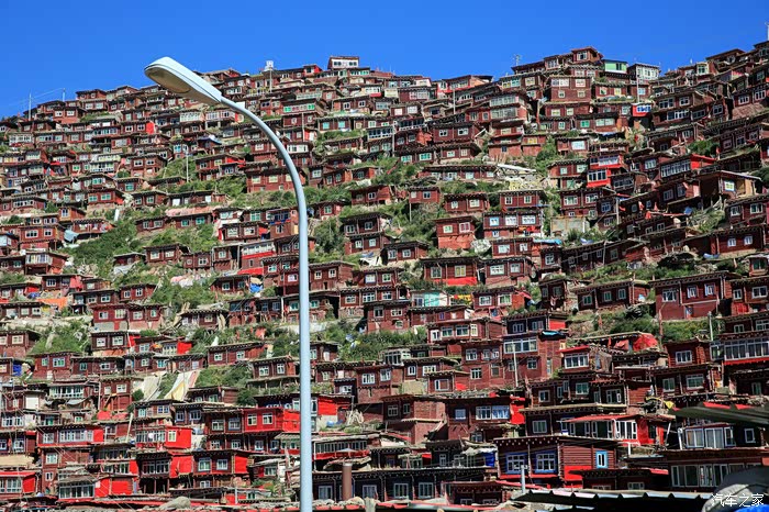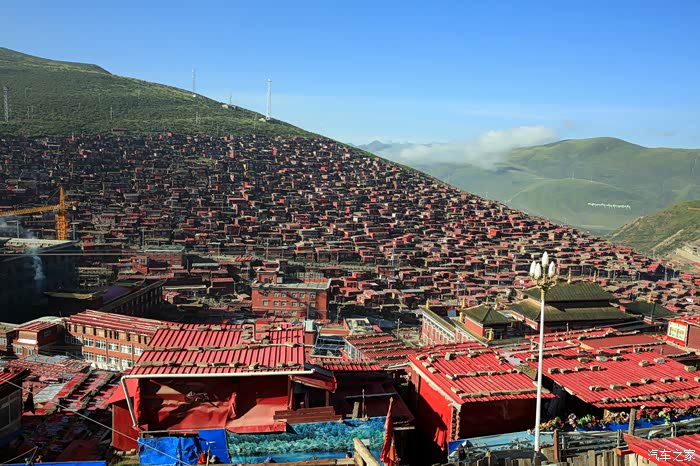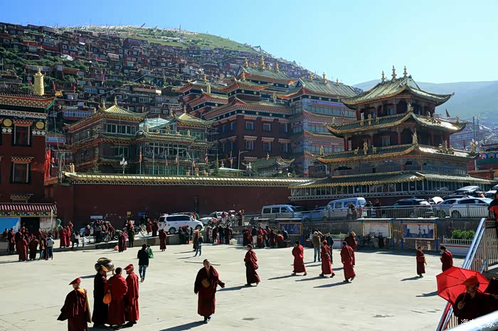 一是充分感受了佛学院建筑群的宏大壮观,层层叠叠,密密麻麻,漫山遍野,火红一片,经受了从未有过的心灵震撼。