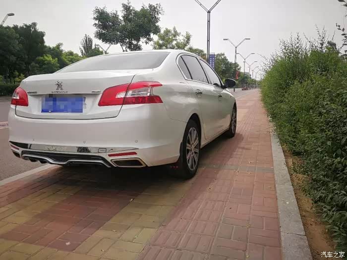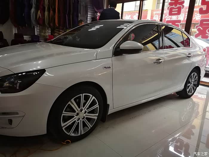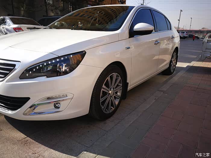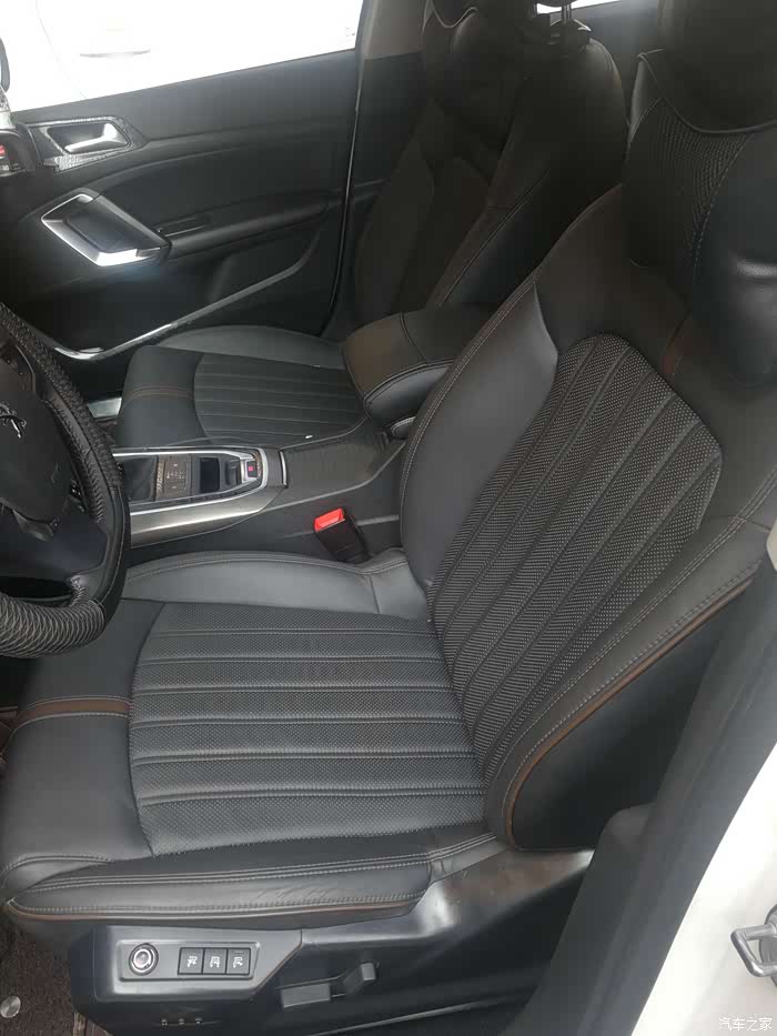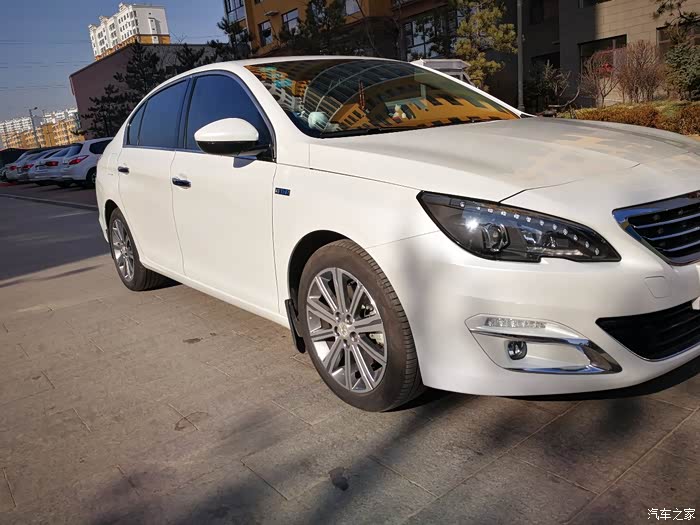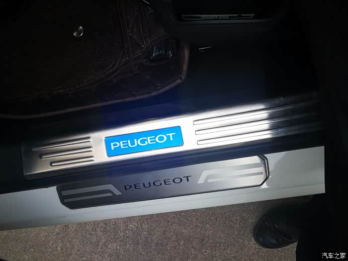 说到重点,自然就是小狮子了,我们这里小狮子4S店位置太偏了,是我第三次去的时候看过马自达之后瞟见了后面有一家东风标致,当时也没什么想法,就是抱着顺路的心态进去转了一圈,结果一眼就看中了店里面最显眼位置的408,也许是眼缘,第一眼就被吸引了,第一印象,这车好大,围着转了一圈,当时就心动了,然后拉开车门进去一看,哇,这内饰,好有档次!悬浮式的中空大屏,边框的金属线条,恰到好处的镀铬装饰,尤其是挡把位置,嗯,很有***的类木纹的装饰设计,电子手刹也十分大气,然后坐了坐后排,空间把威朗给秒了,真心的,后排出风口,还有12V电源,想要的配置几乎全都有。